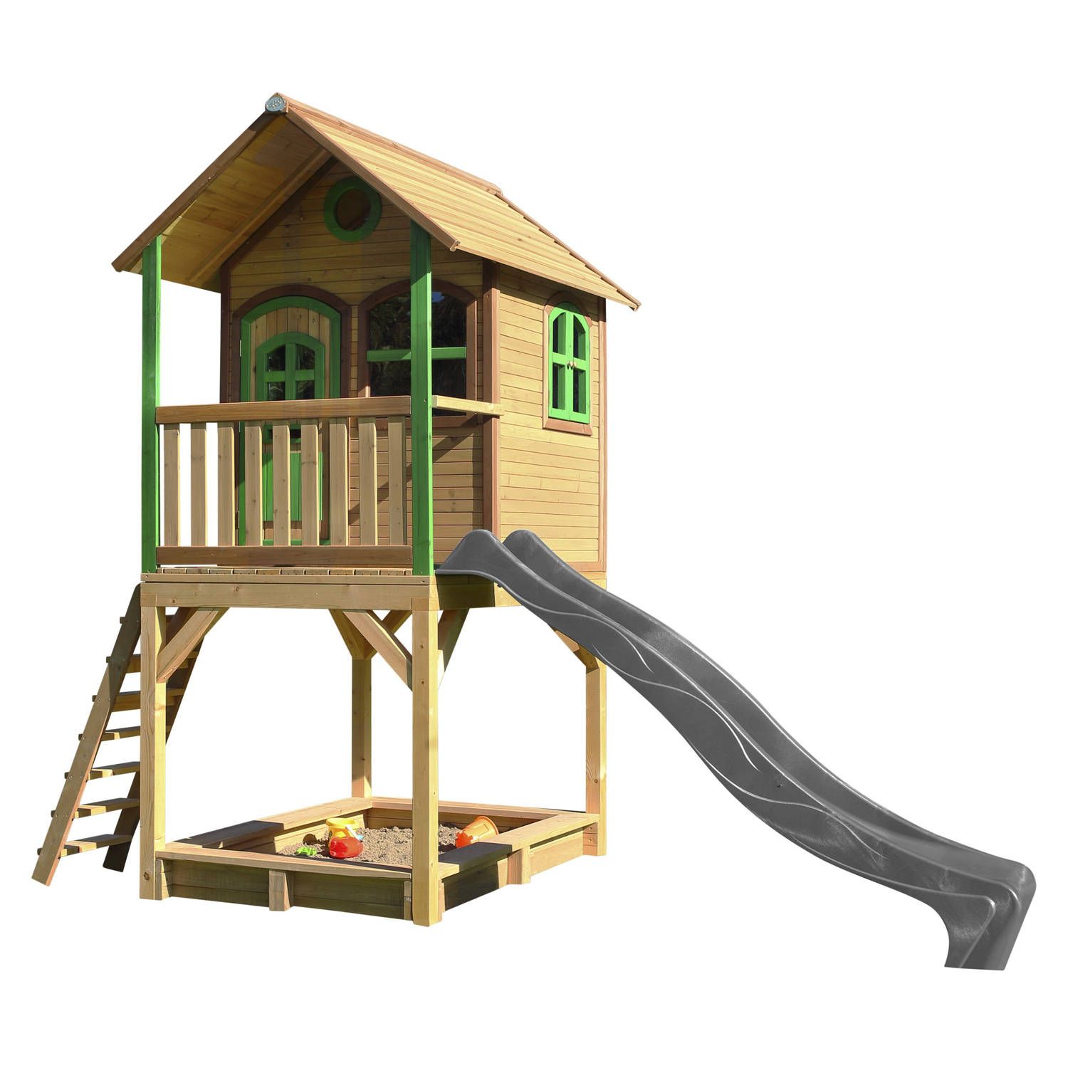 AXI Classic Sarah Speelhuis - Bruin/Groen - Grijze Glijbaan - Hout - 3+ jaar - Klimrekken