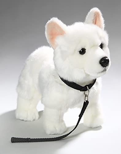 Carl Dick Witte herder hond met lood staande 9 inch lang, 8 inch hoog, 26/22cm, pluche speelgoed, zacht speelgoed 3485 - Knuffelspeelgoed