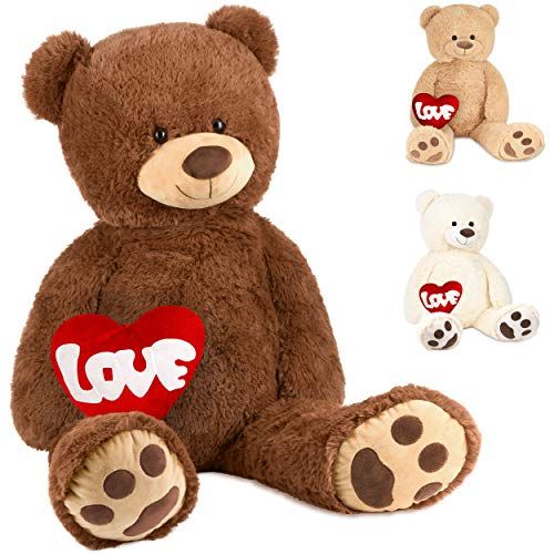 BRUBAKER XXL Teddybeer 100 cm Bruin met een Love Hartje Knuffel Pluche Knuffeldier