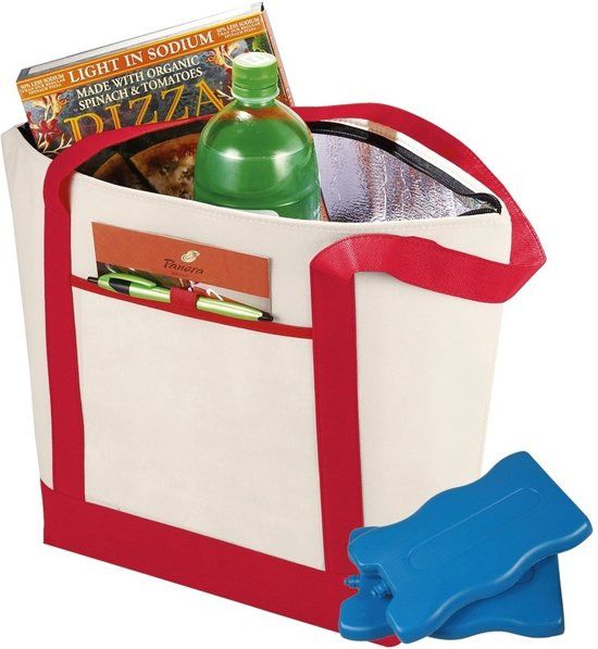 Shoppartners Rood/naturel draag koeltas met 4x koelelementen set