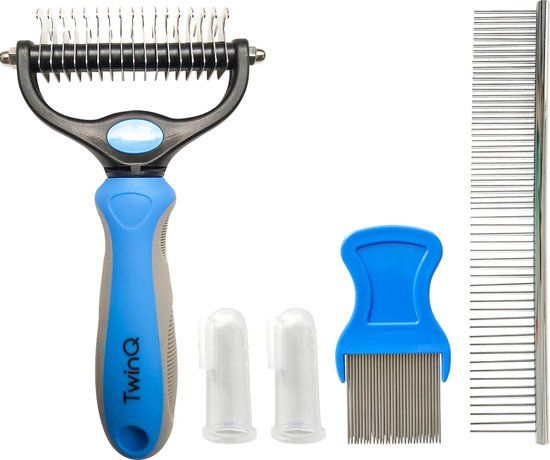 TwinQ Vachtverzorgingsset voor Honden en Katten - Incl. Kammen en Tandenborstel - Koepels