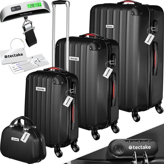 tectake 4-delige reiskofferset - Harde koffers met cijferslot - Zwart - Kofferreissets