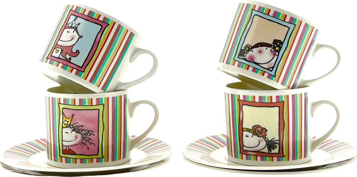 Girl Talk Kop en Schotel Set van 4 - 200ml - Aardewerk - Multi