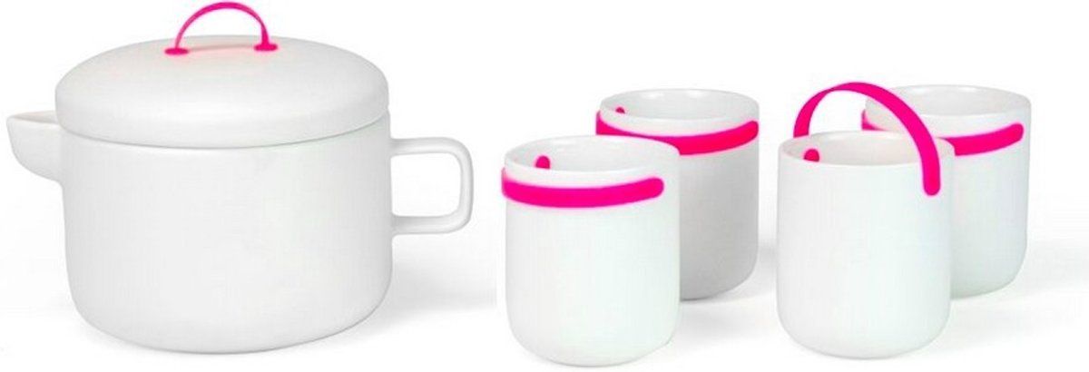 Cookut Keuken Promenade Theepot met Theezeef en 4 Theebekers Roze - 3760195163719 - Koffie- en theekopjes