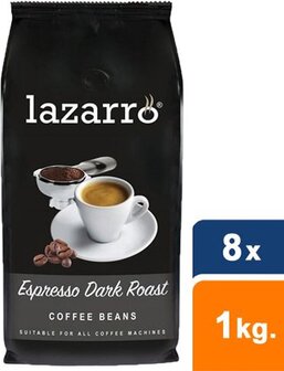 Lazarro Koffie lazarro bonen dark roast 1kg - 8 stuks - Koffiebonen en gemalen koffie