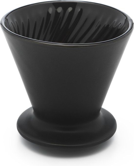 Het koffiefilter is uitgevoerd in keramiek en in diepzwart en mag in de vaatwasser gereinigd worden. In het filter passen de papieren filters type 4.