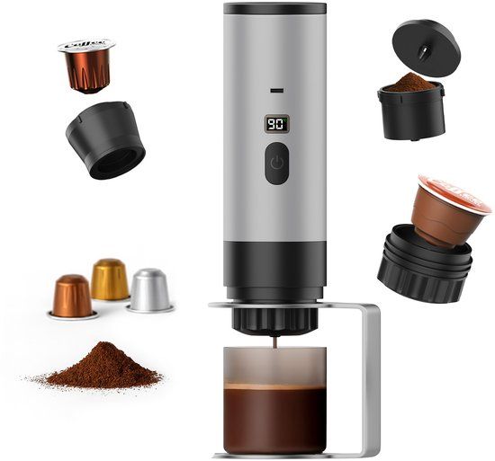 Bekijk productMMOBIEL Draagbare Koffiezetapparaat - 12 Volt Portable Koffiemaker voor Gemalen Koffie & Nespresso Capsules - Zilver - Koffiezetapparaten