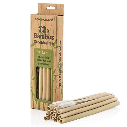 Goods & Gadgets Bamboe rietjes herbruikbaar - 12-delige set drinkrietjes bio-logisch met reinigingsborsteltje