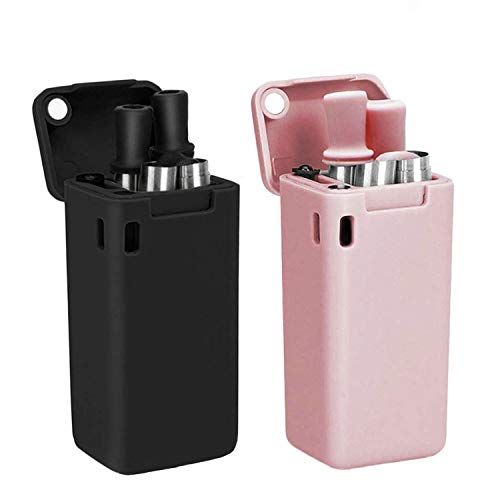 AVANA Herbruikbare roestvrijstalen rietjes - set van 2 opvouwbare siliconen rietjes - zwart en roze
