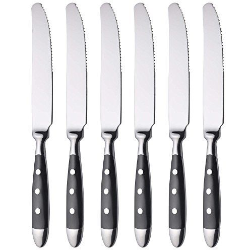 GRÄWE Tafelmessen 6-delige set - menumes van gesmeed roestvrij staal, roestvrij, nikkelvrij, zwarte handgreep, serie "Nürnberg" - Koksmessen