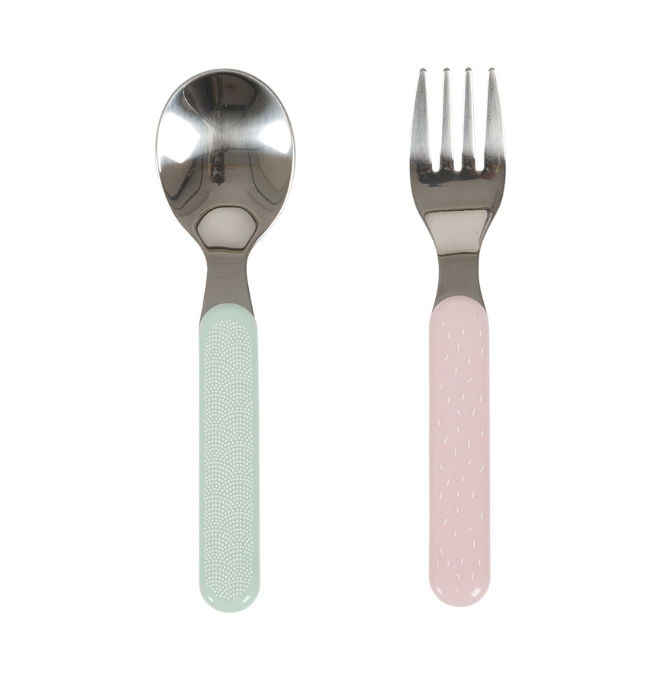 Dit mooie bestekje is speciaal gemaakt voor handige hummeltjes die graag zelfstandig willen (leren) eten. De set bestaat uit een vork en lepel en is gemakkelijk vast te houden door kleine handjes. Leuk om te zien en goed te combineren met de andere onderdelen uit onze serviesserie.