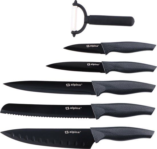 Alpina 6-Delige Messenset - Zwart - RVS - Antikleeflaag - Ergonomisch