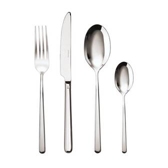 Rigorous design that combines esthetic, functionality and fine sophistication: Sambonet Linear\n\n- High quality 18/10 stainless steel cutlery, with solid and elegant handle\n- Perfect for elegant mise-en-place full of personality to give a little touch of style\n- Table set for 6, included: 6 forks, 6 spoons, 6 knives and 6 tea spoon\n- Proposed in an elegant packaging, exclusive as idea for a gift. Dishwasher safe