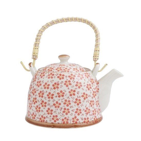 Clayre & Eef 6CETE0031 Theepot - 14 x 14 cm - keramiek - rood - Koksmessen