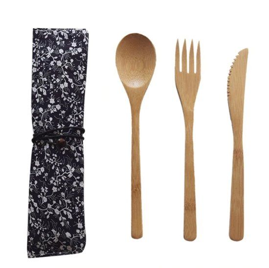 SiblingcommerceNL Bamboe bestek - Milieuvriendelijk - Vork Lepel Mes - Ideaal om mee te nemen - Voor picknick of op reis