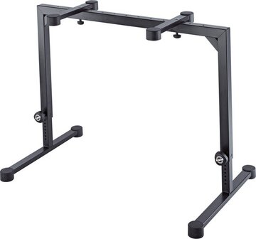 Its compact steel tubing construction and large round floor protectors make this attractive keyboard stand significantly more stable. Two-sided spring-loaded locking screws make precision height adjustment easy. The support arms can be adjusted to suit the size of the keyboard. When folded, the table is impressively flat. The design of this table matches the keyboard benches 14080, 14081, 14085 and 14086.An optional extra are the stackers 18811 for a second level and 18822 for a third level, allowing the use of a second or third keyboard/laptop. Use the adapter 18814 to mount the universal holder 18817 easily and quickly.