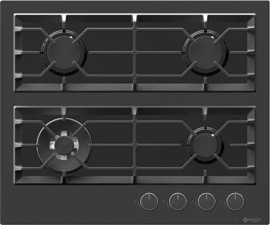 Wiggo WH-G634GR(B) - Inbouw gaskookplaat met Wok - 60cm - Zwart Glas - Kookplaten