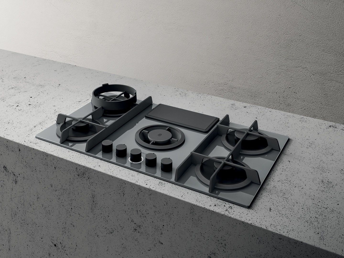 Elica NIKOLATESLA FLAME GR/A/83 - 88cm Gas Cooktop with Integrated Extractor - Grey - Kookplaten