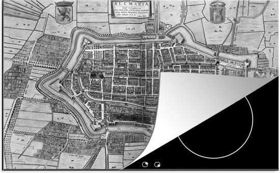 KitchenYeah® Inductie beschermer 77x51 cm - Historische stadskaart van Alkmaar - zwart wit - Kookplaten