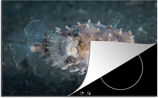 Een schitterende afbeelding van een kleine kogelvis die uitgeblazen is. De kogelvis is aan het zwemmen op de bodem. Deze weergave komt goed tot zijn recht in het interieur van de woonkamer..