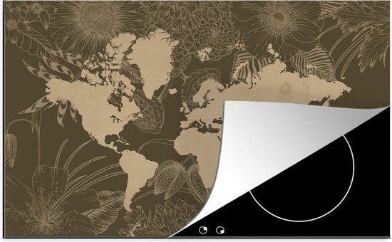 KitchenYeah® Inductie beschermer 77x51 cm - Wereldkaart - Bloemen - Bruin - Kookplaten