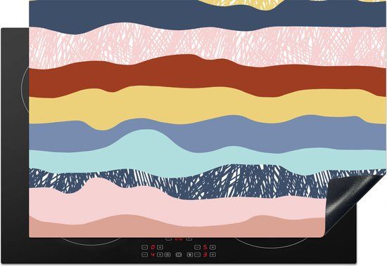 KitchenYeah® Inductie beschermer 77x51 cm - Design - Lijnen - Kinderen - Inductie kookplaat accessoire - Multicolor - Kookplaten