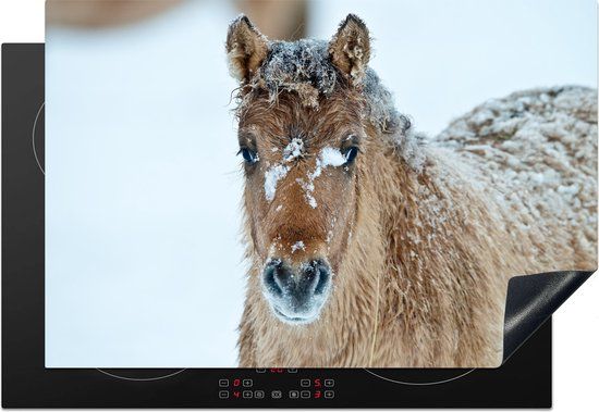 Inductie mat - Jong fjord paard bedekt met sneeuw - Inductie afdekplaat - Keuken