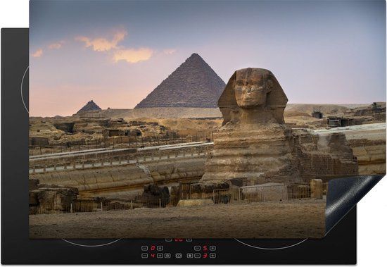 KitchenYeah® Inductie beschermer 77x51 cm - De Sfynx voor Egyptische piramides onder zonsondergang - Inductie kookplaat accessoire - Kookplaten