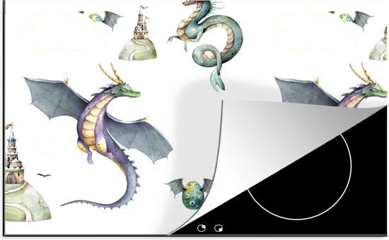 KitchenYeah® Inductie beschermer 77x51 cm - Jongens - Draak - Kasteel - Kookplaten