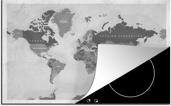KitchenYeah® Inductie beschermer 77x51 cm - Wereldkaart - Zwart/Wit - Inductiebeschermer - Kookplaten