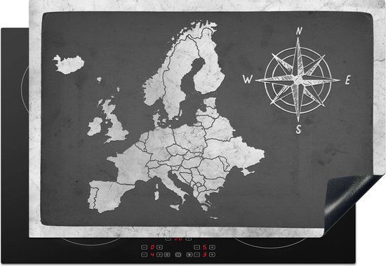 Inductie mat - Vintage Europakaart met windroos - zwart wit - Inductie afdekplaat - Keuken