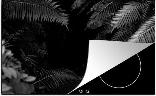 KitchenYeah® Inductie beschermer 77x51 cm - Tropische varens in het regenwoud - zwart wit - Kookplaten