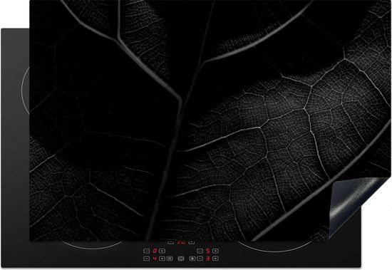 KitchenYeah® Inductie beschermer 77x51 cm - Schaduwen over een blad - zwart wit - Kookplaten