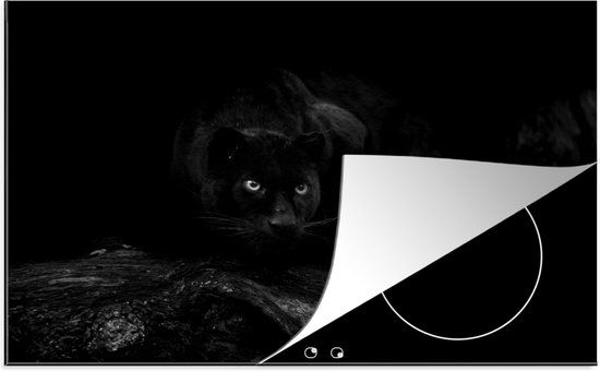 KitchenYeah® Inductie beschermer 77x51 cm - Zwarte panter in een donker bos - zwart wit - Inductiebeschermer voor inductie kookplaat - Kookplaten