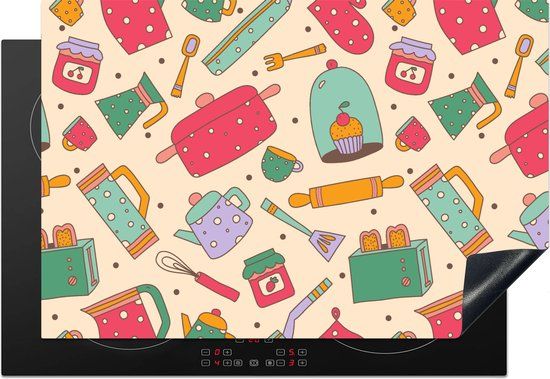 Patroon van keukenbenodigdheden waaronder een theekan. .Reviews