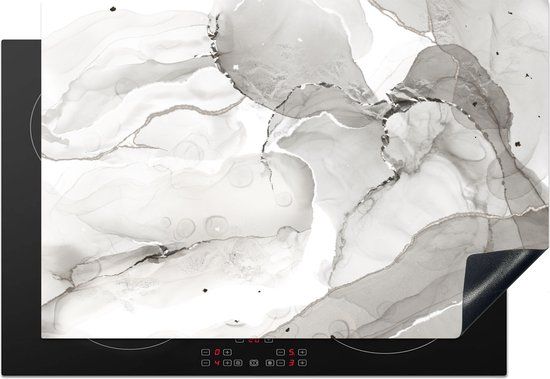KitchenYeah® Inductie beschermer 77x51 cm - Marmer print - Zwart - Wit - Inductie kookplaat accessoire - Kookplaten