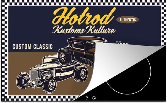 KitchenYeah® Inductie beschermer 77x51 cm - Mancave - Auto - Retro - Blauw - Bruin - Kookplaten