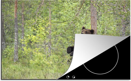 KitchenYeah® Inductie beschermer 77x51 cm - Beer - Boom - Bos - Inductiebeschermer - Inductiemat - Inductieplaat mat - Kookplaten