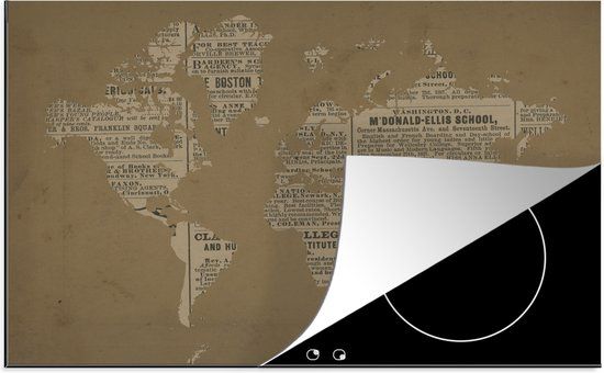 Inductie mat - Wereldkaart - Vintage - Krantenpapier - Inductie afdekplaat - Keuken