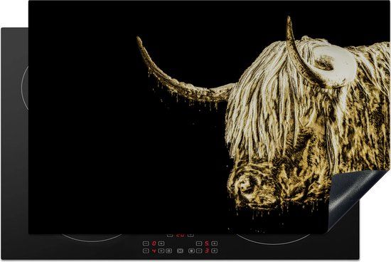 KitchenYeah® Inductie beschermer 80.2x52.2 cm - Schotse Hooglander - Zwart - Goud - Kookplaten