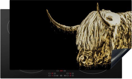 KitchenYeah® Inductie beschermer 91.6x52.7 cm - Schotse Hooglander - Zwart - Goud - Kookplaten
