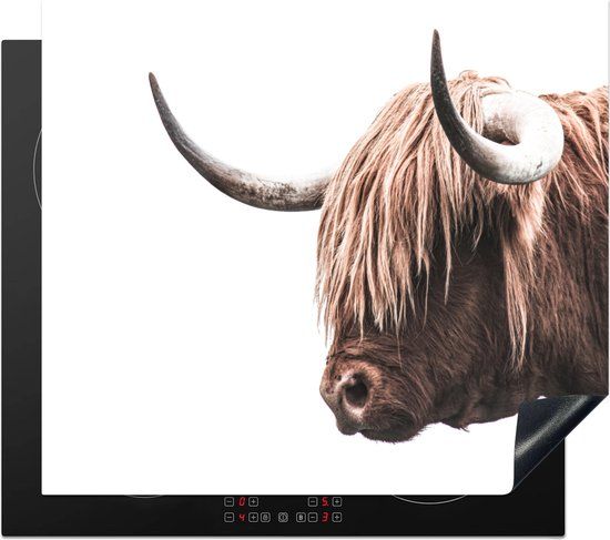KitchenYeah® Inductie beschermer Schotse Hooglander - 58.3x51.3 cm - Wit - Kookplaten