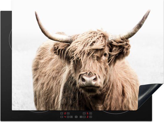 KitchenYeah® Inductie beschermer 70x52 cm - Schotse Hooglander - Gras - Wit - Inductiebeschermer - Kookplaten