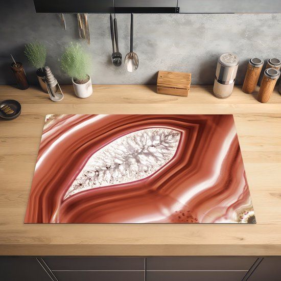 KitchenYeah® Inductie beschermer 77x51 cm - Close-up van een rood met witte agaat - Inductiebeschermer voor Inductie Kookplaat - Kookplaten