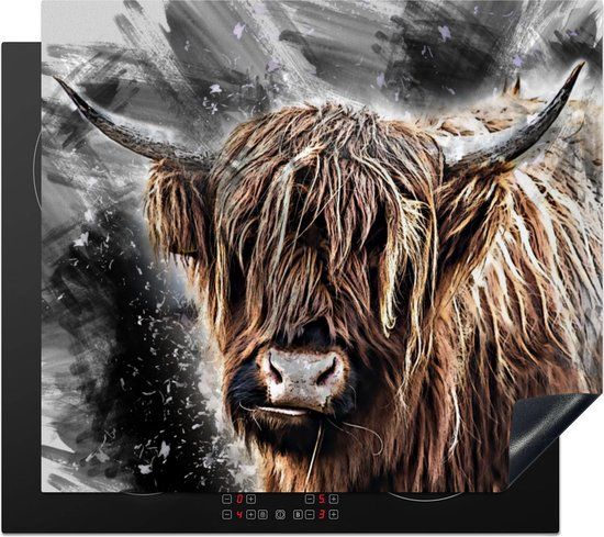 KitchenYeah® Inductie beschermer Schotse Hooglander - Zwart - 58.3x51.3 cm - Kookplaten