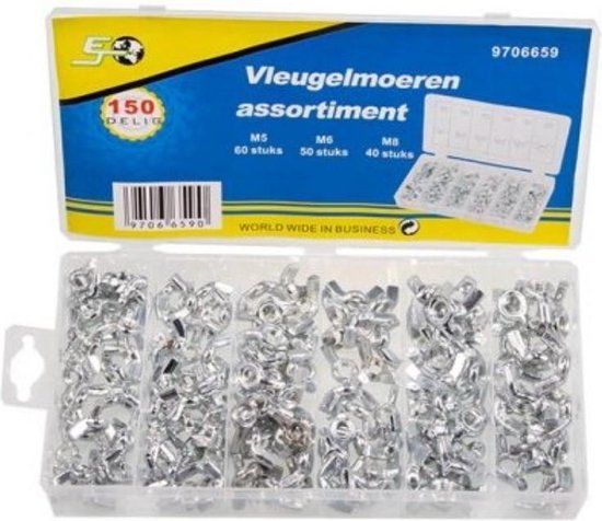 Merkloos Vleugelmoer Assortimentbox - M5, M6, M8 - 150 Stuks - Koperen splitpennen en papierbinders