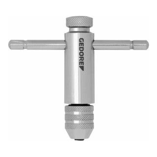 Kenmerken: Met verzonken centreeroog - vergemakkelijkt de correcte uitlijning van de tap-/schroefdraadafzuiger. Voor het gebruik van de schroeventrekkers (nr. 8551 en 8551 S) op moeilijk bereikbare plaatsen Omschakelbaar, rechts- en linksdraaiend Beweegbare kruisgreep Met twee klauwplaten voor vierkante schachten Volledig stalen ontwerp, verchroomd