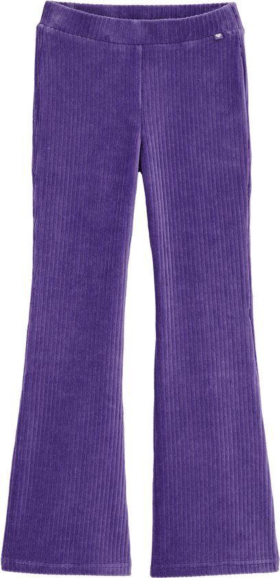 WE Fashion Meisjes velvet flared legging van ribstof 122 Dark purple