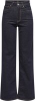 Only jeans wide leg ONLMADISON. Model ONLMADISON BLUSH HW WIDE DNM. Kleur dark blue denim. Deze high waist jeans met een wide fit biedt ultiem comfort. De wijd uitlopende pijpen geven de denim broek een trendy, retro vibe, terwijl de knoop en ritssluiting zorgen voor een strakke, comfortabele pasvorm.