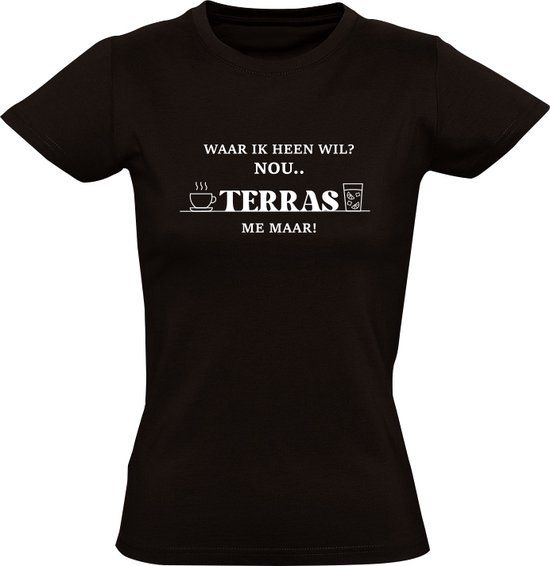 Bekijk productTerras me maar Dames T-shirt - Zwart - 4XL - Kostuumjurken
